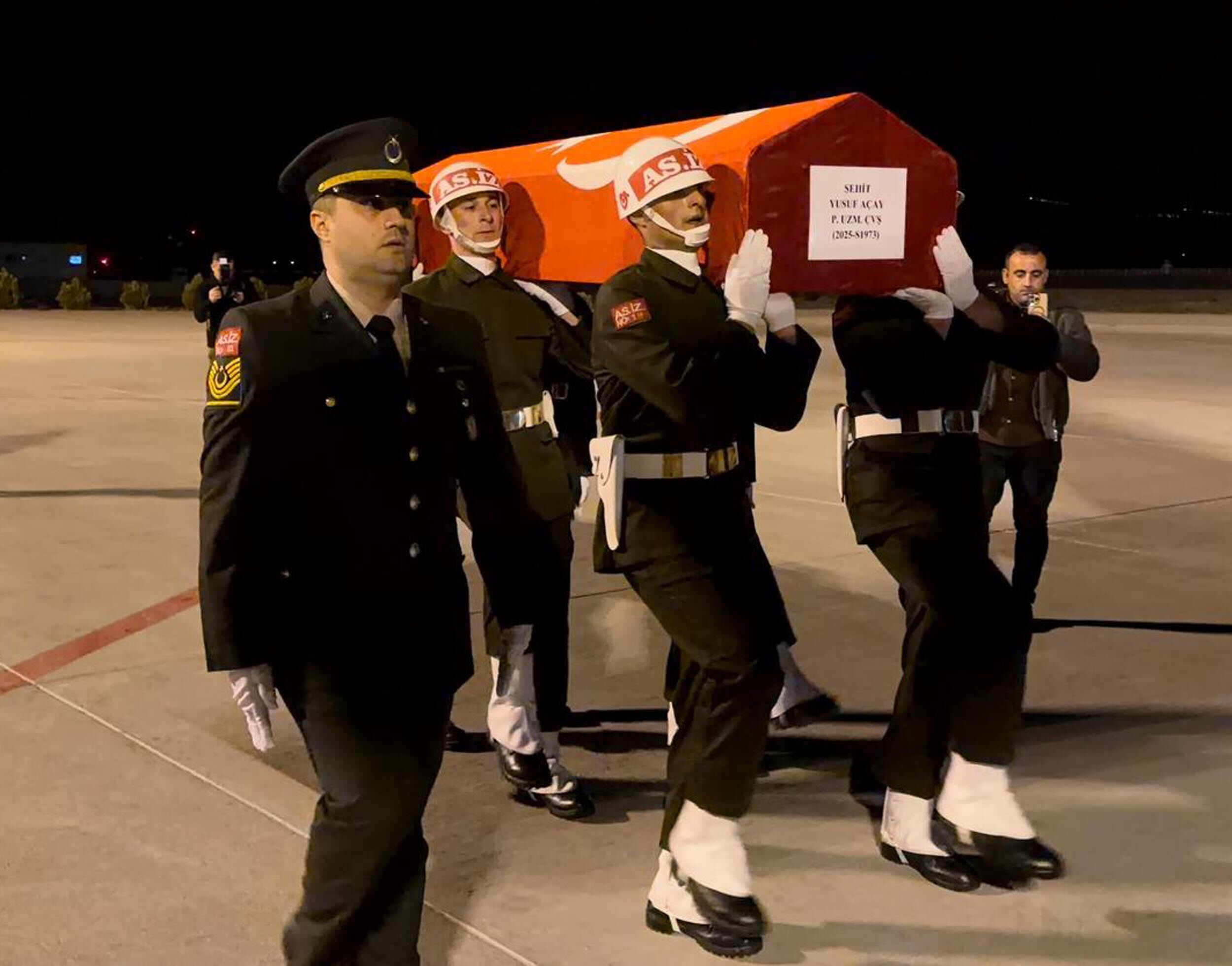 Şehit Piyade Uzman Çavuş Yusuf Açay için Iğdır Şehit Bülent Aydın Havalimanı’nda tören düzenlendi. Törene Iğdır Valisi Mustafa Fırat Taşolar, 5’inci Hudut Tugay Komutanı Tuğgeneral Cavit Tütüncü Iğdır İl Emniyet Müdürü Niyazi Turgay, Iğdır İl jandarma Komutanı Tuğgeneral Zafer Özden, Iğdır Üniversitesi Rektörü Prof. Dr. Ekrem Gürel, ilçe kaymakamları ve kurum yöneticileri katıldı.